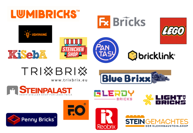 Hier findest du Anbieter zum Thema alte und neue Sets, Einzelteile, Schienen, Beleuchtung, Drucken und Minifiguren.